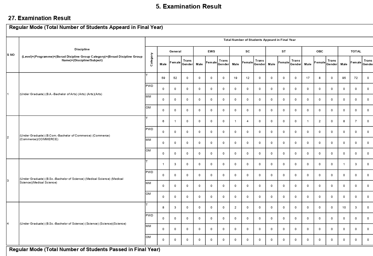 Result data for the Session 2024-25