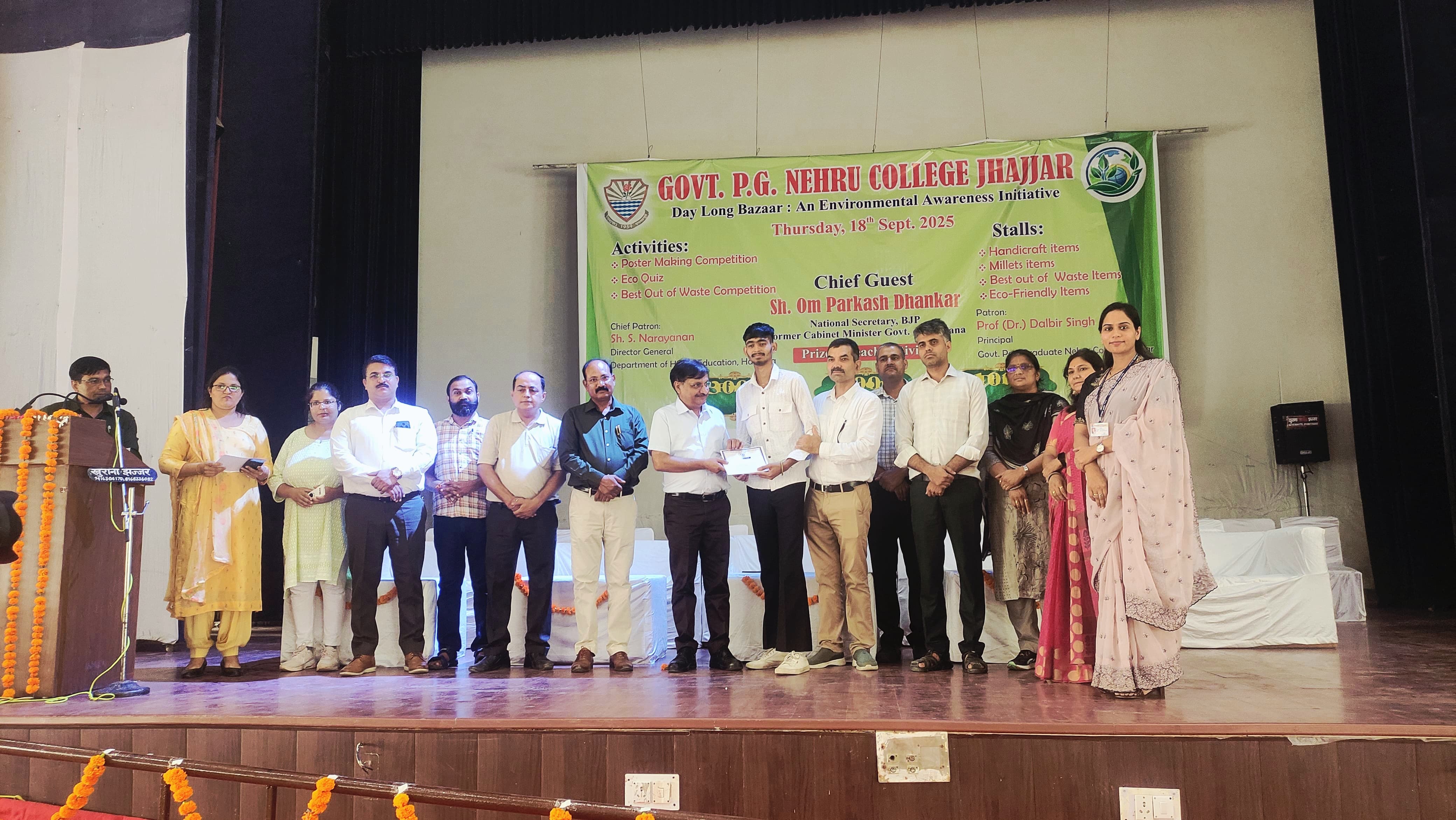 Ajay Rathore got second prize in poster making competition at district level event named day long Bazaar at PG Nehru government college Jhajjar on 18.09.2025
